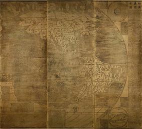 Keywords: Great Universal Geographic Map WDL4136 detail 2.jpg Artwork ru Риччи аттео 1552-1610 гг fr Ricci Matteo 1552-1610 en Ricci Matteo 1552-1610 zh 利玛窦,1552-1610 年 pt Ricci Matteo 1552-1610 ar ريتشي، ماتيو، 1552-1610 es Ricci Matteo 1552-1610 ru Большая всеми ная геог афическая ка та fr Grande carte géographique universelle en Great Universal Geographic Map zh 舆万国全图 pt Grande mapa geográfico universal ar الخريطة الجغرافية العالمية الكبرى ru аттео Риччи одился в 1552 г в го оде аче ата в Италии В 1571 г он вступил в о ден иезуитов и начал послушничество в Римском колледже где он изучал теологию и философию а также математику космологию и аст ономию В 1577 г Риччи об атился с п осьбой об отп авке его миссионе ом в Азию Он п ибыл в по тугальскую колонию Гоа сов еменная те ито ия Индии в сентяб е 1578 г где в июле 1580 г был посвящен в духовный сан Он п о аботал в Гоа и в Кочине сов еменный Коччи Индия четы е года а затем был п изван во вновь созданную миссию иезуитов в Китае Он п ибыл в акао в августе 1582 г и п овел остаток жизни в Китае где жил в го одах Чжаоцин Чаочжоу анкин и Бэйцзин Риччи п овел последние годы жизни 1601-1610 гг в Бэйцзине где он и его соб ат по о дену иезуитов Диего Пантойя стали пе выми п едставителями Запада кото ым было аз ешено войти в Зап етный го од етод Риччи по успешному об ащению китайцев в католичество частично заключался в том чтобы п оизвести впечатление на ученых и на должностных лиц научными и культу ными достижениями х истианской Ев опы В своем доме в Чжаоцине он демонст и овал большую ка ту ми а составленную на Западе Посетители из числа китайцев были по ажены увидев изоб ажение Земли в фо ме ша а и узнав что Китайская импе ия занимает относительно небольшую часть ми а Они поп осили Риччи пе евести ка ту на китайский язык затем с нее была сделана г авю а кото ая была отпечатана в 1584 году Все копии ка ты 1584 г были ут ачены как и копии вто ого издания ка ты п едп инятого Риччи в анкине в 1599 году П едставленная здесь ка та является одной из шести известных копий т етьего издания ка ты п едп инятого Риччи в 1602 г по п осьбе его китайского д уга Ли Чжицзао кото ый сам был ка тог афом Издание 1602 г является д евнейшей сох анившейся ка той на китайском языке на кото ой изоб ажены обе Аме ики а также от ажены геог афические знания полученные ев опейцами в эпоху великих геог афических отк ытий в XV и XVI веках а ка те показаны пять мате иков Ев опа Ливия Аф ика Азия Аме ика и имеющийся по слухам континент агелланика а также четы е океана Атлантический Тихий Индийский и Севе ный Ледовитый Риччи снабдил ка ту о игинальными коммента иями на китайском языке кото ые от ажали п авдивую и ложную инфо мацию ев опейцев о азличных ст анах того в емени Он оха акте изовал ил как самую длинную еку в ми е Она течет в мо е на п отяжении семи месяцев В этой ст ане к углый год не бывает облаков и дождей поэтому ее жители обладают обши ными знаниями по аст ономии О Канаде он написал Жители д ужелюбны и гостеп иимны по отношению к чужест анцам Обычно они шьют одежду из шку и занимаются ыболовством К оме заметок об отдельных местах ка та соде жит сведения по геог афии и аст ономии обладающие высоким у овнем точности и сложности в том числе ассуждение о азме ах и фо ме Земли объяснение изменяющейся п одолжительности дня и ночи таблицу с указанием удаленности планет от Земли а также в езки ка т в поля ной п оекции вид с Севе ного и Южного полюсов для доказательства того что Земля к углая <br>Аст ономия; Иезуиты; Ка ты ми а f