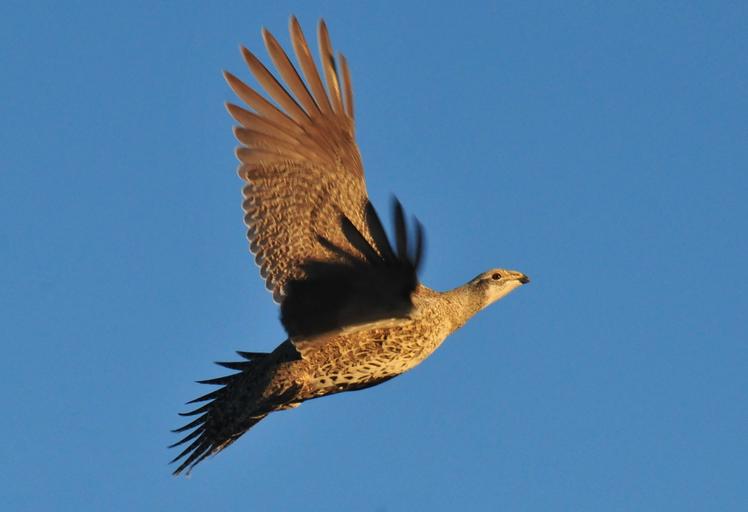 Keywords: greater sage grouse flying portrait bird flight wild nature wildlife sky wings outdoors air
