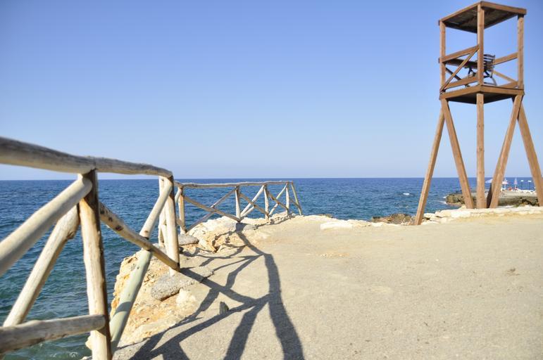 Keywords: greece crete beach sea sandy beach beautiful beach sand island view lookout tower holiday