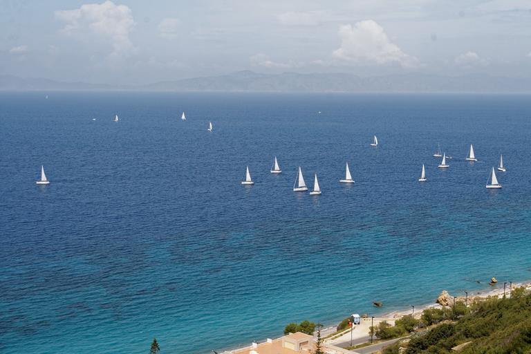 Keywords: greece rhodes sea water boot sailing boat beach swim sky clouds