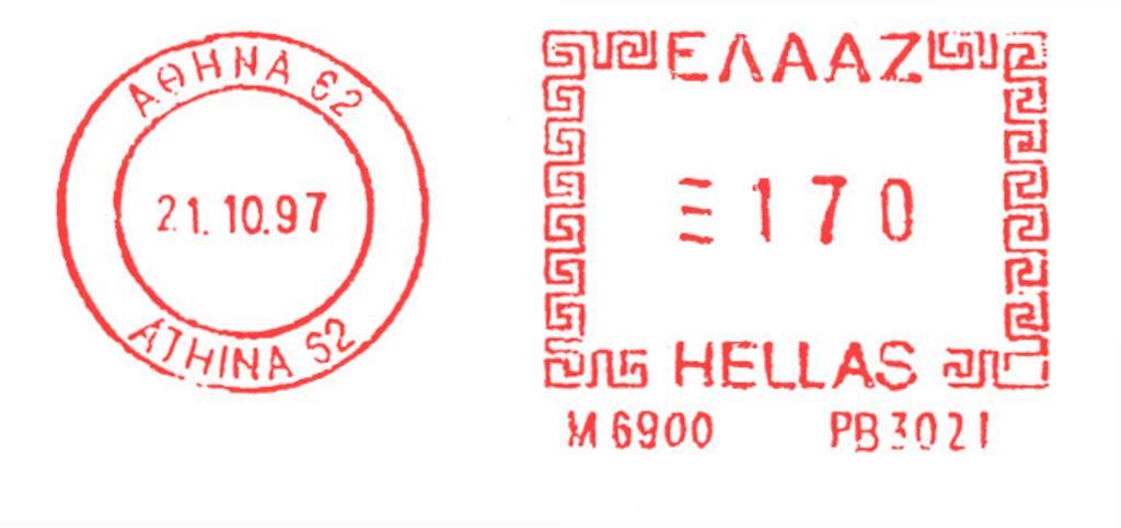 Keywords: Greece stamp type D12.jpg en Meter stamp catalog image Greece type D12 Richard Stambaugh Richard Stambaugh 2010-11-25 Cc-zero Meter stamps of Greece