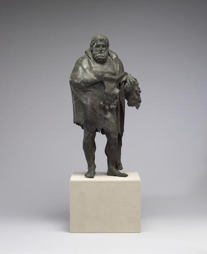 | Keywords: Greek - Aged Herakles - Walters 54764.jpg This bronze statuette depicts a heavy-set Herakles in a rare moment of quiet His shoulders are covered with a lion skin that gathers in a generous fold behind his neck The drooping lion skin is visual contrast to Herakles' fully muscled body The rich curls of the lion's mane drape over the hero's left arm but the head of the animal is now missing Herakles' right arm is hidden beneath the skin Similar examples of this statue-type indicate that his left hand held a club against the left shoulder Herakles is heavily bearded his facial hair rendered in thick curls reminiscent of the lion's mane A gilded band encircles his head The eyes are silver and it appears that another material would have been used for the pupils This representation of Herakles is known from several examples including a marble version in the Walters Art Museum 23 74 Both of the Walters' pieces are likely modeled on a famous Hellenistic statue of the hero as a wayfarer Euripides' play Alkestis depicts just such a Herakles who appears as a traveler and unannounced guest at the home of Admetos whose wife Alkestis has just died In the drama the hero is initially unaware of the tragedy unfolding around him Oblivious to his host's suffering he advocates drinking wine to ease life's difficulties revealing a less noble side of the hero Once he finally recognizes the plight of the family he reverts to his heroic self and succeeds in bringing Alkestis back to life Unlike so many depictions of Herakles this statuette captures the hero in a moment of rest rather than at the height of a challenge The bulk of his body his mature appearance and his relaxed pose suggest that this is the hero later in life well after the period of his famed labors Roman copy 1st century BC-AD 1st century; Greek original 3rd century BC Hellenistic cast bronze with silver and gilding cm 43 23 8 14 accession number 54 764 37884 Dirkan Kelekian New York and Paris date and mode of acquisition unknown Henry Walters Baltimore date of acquisition unknown by purchase Walters Art Museum Henry Walters Acquired by Henry Walters Heroes Mortals and Myths in Ancient Greece The Walters Art Museum Baltimore; Frist Center for the Visual Arts Nashville; San Diego Museum Of Art San Diego; Alexander S Onassis Public Benefit Foundation USA New York 2009-2011 place of origin Greece Walters Art Museum license Ancient Greek sculptures in the Walters Art Museum Ancient Roman sculptures in the Walters Art Museum Art from Greece Media contributed by the Walters Art Museum needs artist review Statues of Heracles Heracles as an old man Heracles wearing Nemean lion fur skin Old age in Ancient Egypt |