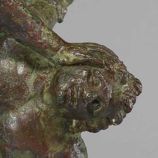 | Keywords: Greek - Allegorical Group of Triumphant Ptolemy - Walters 541050 - Detail B.jpg  Although the group seems to represent two wrestlers the victor's diadem headband identifies him as a Ptolemaic king whose victim probably symbolizes unsuccessful Asian or native Egyptian resistance The image of the triumphant king is inspired by a traditional Egyptian theme but the naturalistic rendering of the bodies shows Greek influence The interlocking figures and the pyramidal silhouette are distinctly Hellenistic early 2nd century BC Hellenistic solid cast bronze cm 19 5 8 9 12 1 accession number 54 1050 19363 From Kharbia Lower Egypt Dikran Kelekian New York and Paris date and mode of acquisition unknown Henry Walters Baltimore 1910-1915 by purchase Walters Art Museum Henry Walters Acquired by Henry Walters 1910-1915 From Alexander to Cleopatra Greek Art of the Hellenistic Age The Walters Art Gallery Baltimore 1988-1989 Ägypten Griechenland Rom Abwehr und Berührung Staedtische Galerie Liebieghaus Frankfurt am Main 2005-2006 Heroes Mortals and Myths in Ancient Greece The Walters Art Museum Baltimore; Frist Center for the Visual Arts Nashville; San Diego Museum Of Art San Diego; Alexander S Onassis Public Benefit Foundation USA New York 2009-2011 place of origin Athens Greece Walters Art Museum license Ancient Greek sculptures in the Walters Art Museum Ancient Egyptian statuettes in the Walters Art Museum Statues of the Ptolemaic dynasty Ancient Greek art in Egypt Art from Greece |