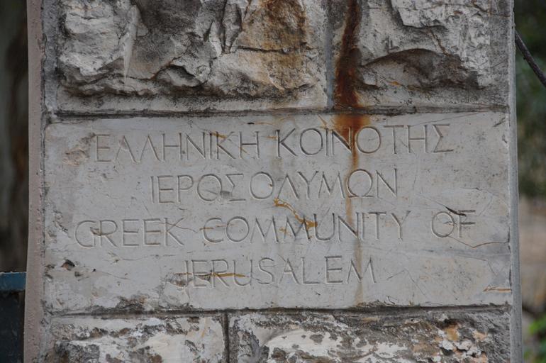 Keywords: Greek colony 1.JPG sign in the greek colony in jerusalem own 2007-05-26 Sir kiss Greek inscriptions in Israel English inscriptions in Israel Plaques in Jerusalem