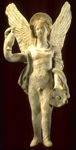 Keywords: Greek - Eros - Walters 482527.jpg The fluttering ends of the drapery and the thick white underpainting or slip are recognizably South Italian All Hellenistic terracotta figurines were gaily painted with bright colors usually derived from plants century 3 BC Hellenistic terracotta with white slip and traces of paint cm 26 7 12 6 1 accession number 48 2527 8916 Dr Frederick G Stern Potomac MD Walters Art Museum December 1985 by gift Gift of Dr Frederick G Stern 1985 From Alexander to Cleopatra Greek Art of the Hellenistic Age The Walters Art Gallery Baltimore 1988-1989 place of origin Constantinople present-day Istanbul Turkey Walters Art Museum license Ancient Greek sculptures in the Walters Art Museum Art from Greece Media contributed by the Walters Art Museum needs category review |
