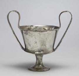Keywords: Greek - Kantharos - Walters 57934 - Side A.jpg The kantharos a type of drinking cup with high handles was the attribute of Dionysus century 5 BC Classical silver with handles cm 20 21 7 13 92 h x w x diam accession number 57 934 37680 Found in Greece Sambon date and mode of acquisition unknown Henry Walters Baltimore 1926 by purchase Walters Art Museum Henry Walters Acquired by Henry Walters 1926 Silver for the Gods Eight Hundred Years of Greek and Roman Silver The Nelson-Atkins Museum of Art Kansas City; Kimbell Art Museum Fort Worth; Toledo Museum of Art Toledo 1977-1978 place of origin Greece Walters Art Museum license Ancient Greek art in the Walters Art Museum Art from Greece Media contributed by the Walters Art Museum needs category review |