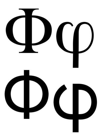 | Keywords: Greek letter phi serif+sans.svg en The greek letter Phi in its upper and lower cases de Der griechische Buchstabe Phi in Groß- und Kleinschreibung recreated from Image greek_letter_phi png as SVG using Inkscape and http //savannah gnu org/projects/freefont/ Free UCS Outline Fonts kuhlix 2009-02-26 Phi letter |