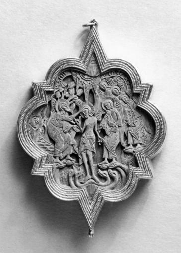Keywords: Greek - Pectoral Icon with the Baptism of Christ and the Deesis - Walters 61145.jpg This delicately carved pendant in a silver frame was worn on the chest by a bishop or abbot Christ stands in the center flanked by John the Baptist on the left and a group of five angels on the right Christ John and the first two angels are shown standing on snakes or dragons in an allusion to Psalm 73 13 You divided the sea by your might you broke the heads of the dragons in the waters The other side of the pendant contains a composition known as Deesis where the Virgin and John the Baptist flanks Christ and address to Him a prayer for the salvation of humankind century 18 Early Modern boxwood gilt on silver cm 10 8 7 3 1 3 accession number 61 145 5448 Henry Walters Baltimore date of acquisition unknown by purchase Walters Art Museum Henry Walters Acquired by Henry Walters place of origin Greece Walters Art Museum license Medieval art in the Walters Art Museum Art from Greece Media contributed by the Walters Art Museum needs category review Psalm 73 |