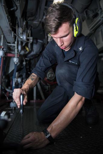 | Keywords: Green Bay Sailor Works in Engineering Spaces 160904-N-JH293-022.jpg en PACIFIC OCEAN Sept 4 2016 Engineman 3rd Class Manny Alexander from Shelbyville Tenn loosens a screw in the main machinery room of the amphibious transport dock ship USS Green Bay LPD 20 Green Bay part of the Bonhomme Richard Expeditionary Strike Group is operating in the U S 7th Fleet area of operations in support of security and stability in the Indo-Asia-Pacific region U S Navy photo by Mass Communication Specialist 1st Class Chris Williamson/Released <br>Unit Navy Media Content Services 2016-09-04 Petty Officer 2nd Class Chris Williamson https //www dvidshub net/image/2838239/green-bay-sailor-works-engineering-spaces 160904-N-JH293-022 2016-09-08 00 05 SASEBO JP PD-USGov-Military-Navy USS Green Bay LPD-20 Images from DoD uploaded by Fæ |