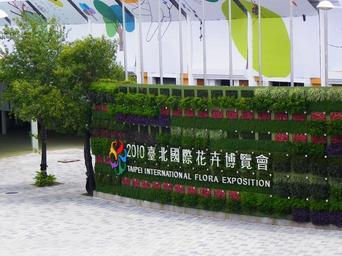 Keywords: Green Brand at Expo Doom Outside.jpg zh-tw 爭艷館(原中山足球館)外的2010臺北 際花博標誌, 於捷運 山站 臺 Own 玄史生 2010-08-28 2010 Taipei International Flora Exposition Walls in Taiwan 玄史生写 文庫 Taken with Kodak EasyShare Z980 Expo Dome Cc-zero