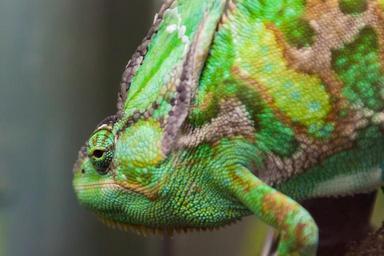 Keywords: green chameleon reptile animal camouflage wild exotic head detail eyes watching
