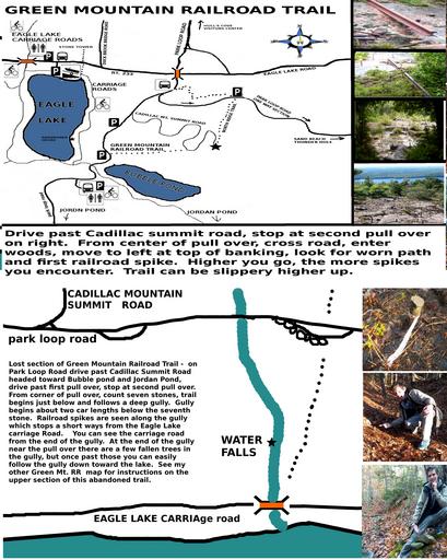 | Keywords: acadia national park nationalpark national parks nationalparks anp mount desert island mountdesertisland mdi bar harbor barharbor maine new england newengland back packing backpacking hiking trail hikingtrail trails camping cadillac mountain cadillacmountain green mountain greenmountain green mountain railroad greenmountainrailroad trains cog trains cogtrains eden eagle lake eaglelake abandoned trails abandonedtrails ghost trails ghosttrails phantom trails phantomtrails text outdoor A cog train once operated between Eagle Lake and the summit of Green Mountain (renamed Cadillac) in what is now Acadia National Park. When the train company went out of business, the rails were all pulled up, except for one section of rail, and sold for scrap metal. That one piece of rail still lies along the route the train took. We know the exact route of the train because the railroad spikes had been driven so deep into the granite they could not be removed and they still mark the route today. Years ago I discovered the route which begins at the park loop road and runs to the summit and mapped it out. This past year after doing some searching I discovered the section of the train route which ran from the park loop road to the Eagle Lake carriage road, with Eagle lake just several yards away. The train route became a popular hiking trail for many years, some time after the land became Acadia National Park the trail was abandoned, but locals still hike it today. A cog train once operated between Eagle Lake and the summit of Green Mountain (renamed Cadillac) in what is now Acadia National Park. When the train company went out of business, the rails were all pulled up, except for one section of rail, and sold for scrap metal. That one piece of rail still lies along the route the train took. We know the exact route of the train because the railroad spikes had been driven so deep into the granite they could not be removed and they still mark the route today. Years ago I discovered the route which begins at the park loop road and runs to the summit and mapped it out. This past year after doing some searching I discovered the section of the train route which ran from the park loop road to the Eagle Lake carriage road, with Eagle lake just several yards away. The train route became a popular hiking trail for many years, some time after the land became Acadia National Park the trail was abandoned, but locals still hike it today. |