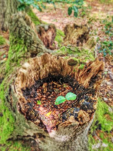 Keywords: green tree stump scion dawn spring new beginning live grow young