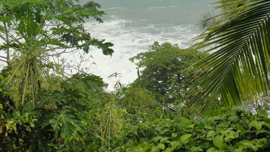 Keywords: greenery flora nature rivers water flowing plants trees papaya coconut palms tropical leaves leafy greens grasses weeds costa rica puerto limón vegetation