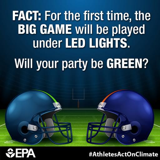 | Keywords: GreenSports - Big Game Under LED Lights.jpg LED lights are more energy efficient than conventional bulbs This year they ™ll be lighting up the big game What are you doing to make your football party green Here ™s some ideas http //www2 epa gov/green-sports/green-sports-fans help www2 epa gov/green-sports/green-sports-fans help LED Light Emitting Diodes are the latest and most exciting technological advancement in the lighting industry LEDs are small solid light bulbs which are extremely energy efficient and long lasting LEDs operate differently than traditional incandescent light bulbs This makes LEDs far more rugged and durable than traditional incandescent light bulbs LED technology also offers many additional advantages over incandescent neon and compact fluorescent lighting devices - such as exceptionally longer life span 60 000 hours enormously lower energy usage 90 more efficient reduced maintenance costs and higher safety LEDs are currently being used for a wide variety of applications such as residential lighting aerospace architectural lighting automotive aviation broadcasting electronic instrumentation entertainment and gaming industrial automation and controls the military traffic and safety transportation 2014-03-20 05 10 09 https //www flickr com/photos/usepagov/16397278675/ USEPA Environmental-Protection-Agency other versions PD-USGov United States Environmental Protection Agency |