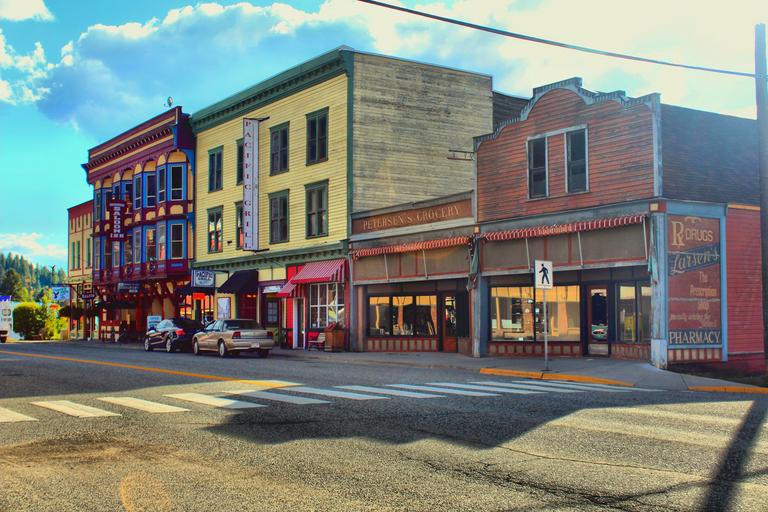 Keywords: street buildings architecture greenwood kootenays bc britishcolumbia canada city town highway stores businesses sun lighting shadows contrasts colorful colors