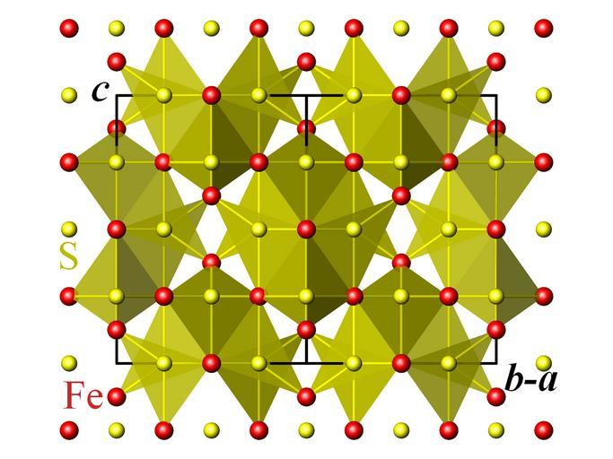 | Keywords: Greigite structure 110 SFe4 tetrahedra.png en Crystal structure of greigite Fe<sup>II</sup>Fe<sup>III</sup><sub>2</sub>S<sub>4</sub> space group Fd<span style text-decoration overline >3</span>m projected along the 110 direction with emphasis on the SFe<sub>4</sub> tetrahedra The iron atoms are represented in red and the sulfur atoms in yellow Image drawn with the program ATOMS version 5 1 Data source B J Skinner F S Grimaldi et al Greigite the thio-spinel of iron; a new mineral Am Mineral vol 49 no 5-6 1964 p 543-555 own Perditax 2012-01-07 Greigite Crystal structures in space group number 227 Cc-zero |