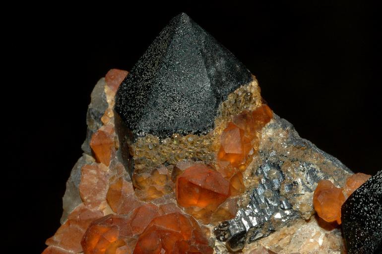 Keywords: Grenats sur quartz fumé1(Chine).jpg cristaux de grenats spessartites spessartines sur quartz fumé collection personnelle 2008-10-18 Géry Parent Spessartine Smoky quartz