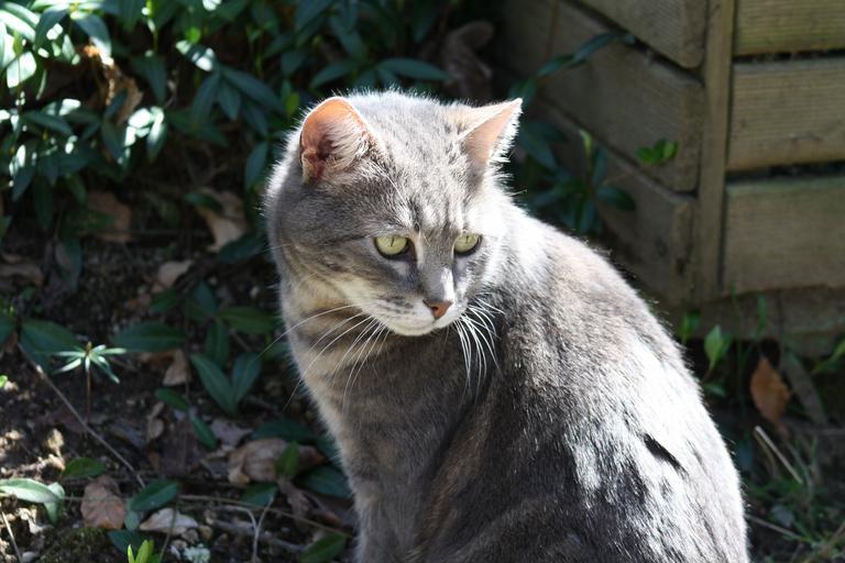 Keywords: grey cat smokey grey feline cat in sunshine