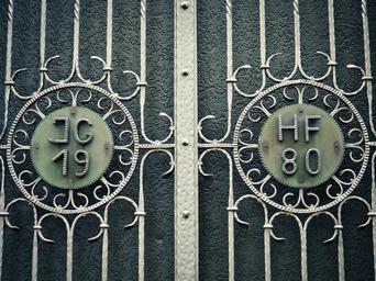 Keywords: grid wrought iron ornament verschnörkelt metal iron goal input iron railings facade metal decorating