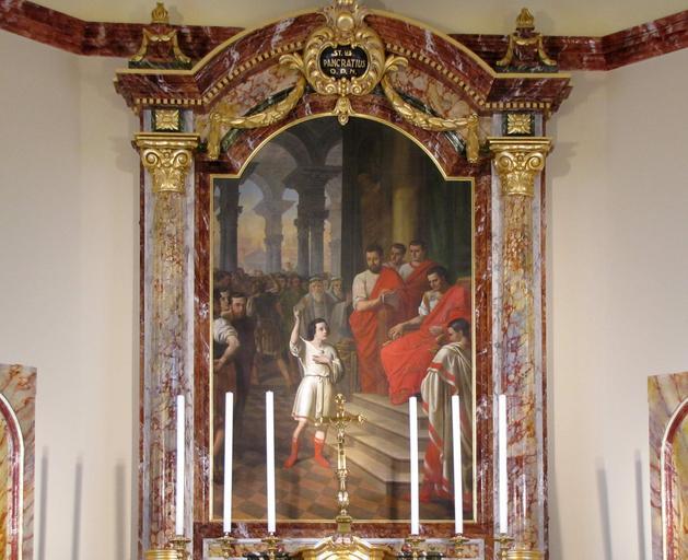 | Keywords: GriesheimSouffel StPancrace 27.jpg Alsace Bas-Rhin Griesheim-sur-Souffel Eglise St Pancrace Maître-autel XIXe tableau de St Pancrace 1855 own 2012 Ralph Hammann cc-by-sa-3 0 IM67009550 Artwork / Œuvre d'art / Kunstwerk Artwork Creator Louis Sorg oil canvas sur plusieurs lés 220 cm de large Eglise Saint-Pancrace Griesheim-sur-Souffel Maître-autel IM67009551 object history Peinture à l'huile sur toile de saint Pancrace datée et signée Sorg 1855 other versions Ralph Hammann PD-old-100 accession number Altars in Église Saint-Pancrace de Griesheim-sur-Souffel Photographs of Griesheim-sur-Souffel by Ralph Hammann Taken with Canon PowerShot SX20 IS Saint Pancratius Church paintings in Bas-Rhin Paintings of Christian saints in France Neoclassical church paintings in Alsace 19th-century church paintings in Alsace 1855 oil on canvas paintings in France 1855 works in Alsace |