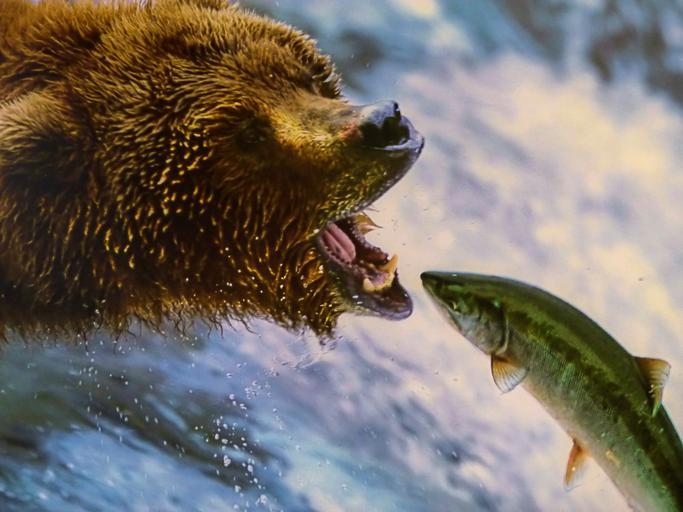 Keywords: grizzly bear dangerous animal wild life canada catching fish salmon water fall sockeye salmon nature salmon run wild food