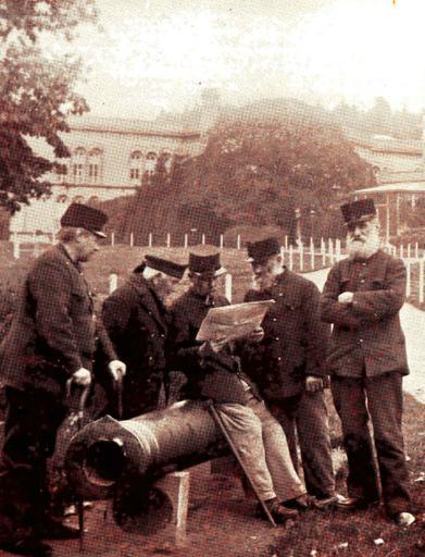 Keywords: Groepje-veteranen-te-Bronbe.jpg en Veteranen op Bronbeek Eigen Haard nvt 1900 PD-old-100 Eigen Haard Bronbeek