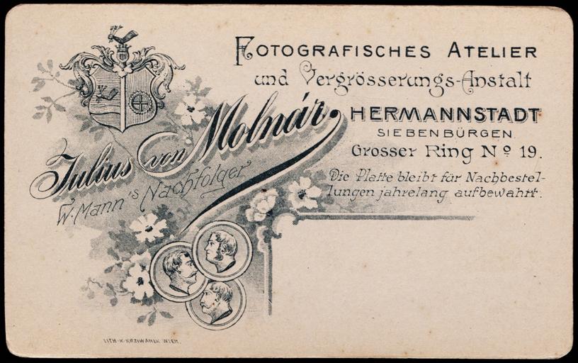 Keywords: Grosser Ring No. 19., Molnár Gyula fényképész műterme. Fortepan 81294.jpg Check categories 2016 August 28 hu Grosser Ring No 19 Molnár Gyula fényképész műterme Location Romania Transylvania Sibiu Tags verso photographer studio Title Grosser Ring No 19 Molnár Gyula fényképész műterme http //www fortepan hu/_photo/download/fortepan_81294 jpg 1900 Fortepan 81294 http //www fortepan hu/_photo/download/fortepan_81294 jpg http //www fortepan hu/ lang en img 81294 Unknown The release at fortepan hu is CC-BY-SA-3 0 As the photographer is unknown or pseudonymous and the photograph is Age 1900 01 01 years old it is considered public domain both in the country of publication Hungary and the USA where Wikimedia Commons is hosted See Fortepan HU for more information on related uploads PD-anon-70-EU PD-1923 PD-1923 DEFAULTSORT Fortepan 081294 1900 photographs Images uploaded by Fæ |