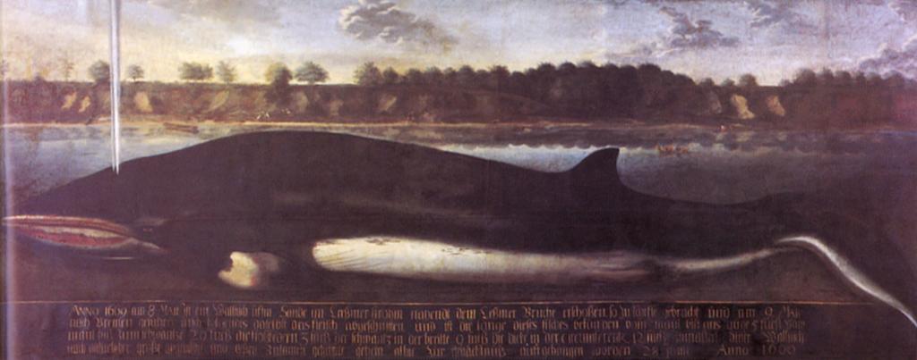 | Keywords: Großes Walbild - Franz Wulfhagen - 1669.jpg en Oil painting Großes Waldbild Large whale picture from the year 1669 by the german painter Franz Wulfhagen 1624 “1670 located in the town hall of Bremen Germany The picture shows a northern minke whale Balaenoptera acutorostrata stranded on the banks of the river Lesum in 1669 de Ölgemälde Großes Walbild von Franz Wulfhagen 1624 “1670 aus dem Jahr 1669 befindlich im der Oberen Halle des Bremer Rathauses Das Bild zeigt einen Nördlichen Zwergwal Balaenoptera acutorostrata der 1669 am Ufer der Lesum gestrandet war und von Bremer Walfänger erlegt wurde Konrad Elmshäuser Hans-Christoph Hoffmann Hans-Joachim Manske Hrsg Das Rathaus und der Roland auf dem Marktplatz in Bremen Edition Temmen Bremen 2002 Franz Wulfhagen 1669 PD-old-100 Großes Walbild Balaenoptera acutorostrata |