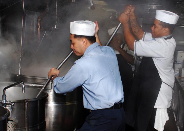 | Keywords: Großküche-USS Tarawa.jpg 070502-N-1786N-005 SAN DIEGO May 2 2007 - Culinary Specialist 1st Class Teofilo Izon and Culinary Specialist 3rd Class Brodrieon Jones help prepare a meal during a Supply Maintenance Certification SMC inspection aboard USS Tarawa LHA 1 The ship ™s culinary specialists are going through an annual inspection where everything from supply books to sanitation is checked Text by U S Navy http //www navy mil/view_image asp id 46001 2007-05-02 Mass Communication Specialist Seaman Bryan Niegel PD-USGov Staff canteens in Germany Side caps Cooking Men at work in the United States 2007 photographs Uploads by Mattes from external sources Galley of the USS Tarawa LHA-1 Tarawa |