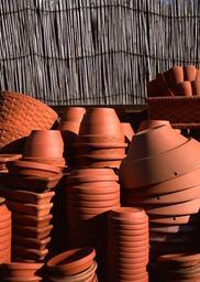 Keywords: terracotta oval sunlight handicraft wet decoration still life warm form many cultural sculpture thai art mud bowl pot day brown formation utensil decor open terracotta pot traditional thai culture shape object sphere