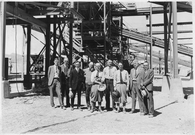 | Keywords: "Group including members of the Concrete Consulting Board at the Six Companies' screening and washing plant. From... - NARA - 293630.tif Scope and content Photograph from Volume Two of a series of photo albums documenting the construction of Hoover Dam Boulder City Nevada General notes 293630 Local identifier Department of the Interior Bureau of Reclamation Engineering and Research Center 05/18/1981 - 03/04/1988 NARA's Rocky Mountain Region Denver NRGA Building 48 Denver Federal Center West 6th Avenue and Kipling Street Denver CO 80225-0307 1932-04-01 Record group Record Group 115 Records of the Bureau of Reclamation 1889 - 2008 Record group ARC 444 Photograph albums compiled 1903 - 1972 Series ARC 293611 File unit File unit ARC Variant control numbers NAIL Control Number NRG-115-CONSTPHO85006-BC21125 yes Other versions <gallery> File Group_including_members_of_the_Concrete_Consulting_Board_at_the_Six_Companies'_screening_and_washing_plant _From _-_NARA_-_293630 tif tif File Group_including_members_of_the_Concrete_Consulting_Board_at_the_Six_Companies'_screening_and_washing_plant _From _-_NARA_-_293630 jpg jpg </gallery> NARA-cooperation PD-USGov NARA TIF images with categorized JPGs |