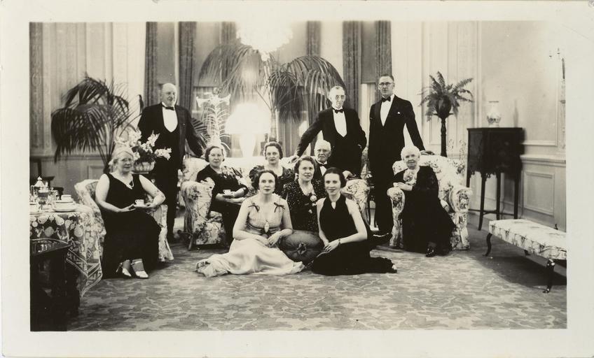 | Keywords: alberta edmonton government house governmenthouse lieutenant governor lieutenantgovernor photo border monochrome (standing, l-r) Colonel W.L. Oliver, Lt.Gov. John Bowen, Oliver McIntyre. (seated on chairs, l-r) Edith Bowen, Hazel McIntyre, Ivy McIntyre, Neil McIntyre, Addie McIntyre. (front, l-r) Margaret Neal (née Bowen), Beulah Barnes, Ruth Freund (née Bowen). From the Bowen family fonds, PR2009.0215/2_45. (standing, l-r) Colonel W.L. Oliver, Lt.Gov. John Bowen, Oliver McIntyre. (seated on chairs, l-r) Edith Bowen, Hazel McIntyre, Ivy McIntyre, Neil McIntyre, Addie McIntyre. (front, l-r) Margaret Neal (née Bowen), Beulah Barnes, Ruth Freund (née Bowen). From the Bowen family fonds, PR2009.0215/2_45. |