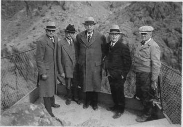 | Keywords: "Group of visitors photographed on Lookout Point with Construction Engineer Walker R. Young. Left to right, Walker R.... - NARA - 293645.tif Scope and content Photograph from Volume Two of a series of photo albums documenting the construction of Hoover Dam Boulder City Nevada General notes 293645 Local identifier Department of the Interior Bureau of Reclamation Engineering and Research Center 05/18/1981 - 03/04/1988 NARA's Rocky Mountain Region Denver NRGA Building 48 Denver Federal Center West 6th Avenue and Kipling Street Denver CO 80225-0307 1932-04-12 Record group Record Group 115 Records of the Bureau of Reclamation 1889 - 2008 Record group ARC 444 Photograph albums compiled 1903 - 1972 Series ARC 293611 File unit File unit ARC Variant control numbers NAIL Control Number NRG-115-CONSTPHO85006-BC21178 yes Other versions <gallery> File Group_of_visitors_photographed_on_Lookout_Point_with_Construction_Engineer_Walker_R _Young _Left_to_right _Walker_R _-_NARA_-_293645 tif tif File Group_of_visitors_photographed_on_Lookout_Point_with_Construction_Engineer_Walker_R _Young _Left_to_right _Walker_R _-_NARA_-_293645 jpg jpg </gallery> NARA-cooperation PD-USGov NARA TIF images with categorized JPGs |