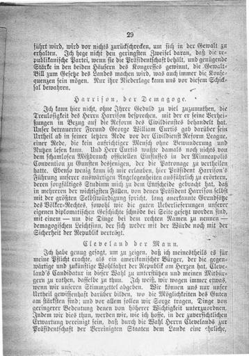 Keywords: Grover-Cleveland-1892-de-p29.JPG en Image of page 29 of the pamphlet Carl Schurz an die Wähler ohne Unterschied der Partei Warum sie für Cleveland stimmen sollen Pamphlet courtesy of the Boston Public Library Carl Schurz 1892-09-08 PD-old Warum die Wähler für Cleveland stimmen sollen Seitebilder |