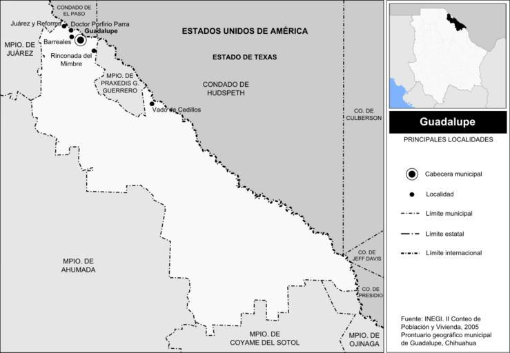 Keywords: Guadalupe localidades.svg Mapa de las principales localidades del municipio de Guadalupe Chihuahua México own Inkscape 2010-06-19 Battroid Maps of Chihuahua