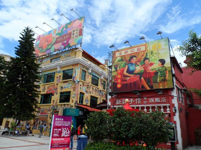 Keywords: guanyejie macau blue sky street city scene