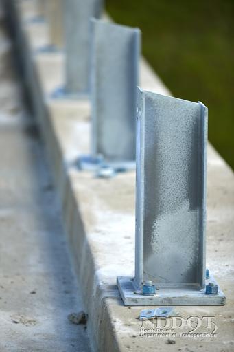 Keywords: highway maintenance bridge interstate jamestown nd depth of field A new guard rail was installed at a bridge overpass in Jamestown along I94. A new guard rail was installed at a bridge overpass in Jamestown along I94.