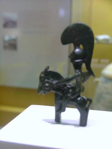Keywords: Guerrero de Mogente 2.JPG es Fotografía del guerrero de Mogente figurilla ibérica datada hacia el 400 a C También se le denomina como Caballo de la Bastida Material bronce Técnica fundición Altura 7 3 cm Lugar de descubrimiento Partida de la Bastida de les Alcuses en Mogente provincia de Valencia España Lugar de exposición Museo de Prehistoria de Valencia en el Complejo de la Beneficiencia own Dorieo 2008-12-21 Warrior of Moixent