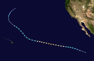 Keywords: Guillermo 2009 track.png Track map of Hurricane Guillermo of the 2009 Pacific hurricane season The points show the location of the storm at 6-hour intervals The colour represents the storm's maximum sustained wind speeds as classified in the Saffir-Simpson Hurricane Scale see below and the shape of the data points represent the nature of the storm according to the legend below User Nilfanion/Tc/T Created by Cyclonebiskit using Wikipedia WikiProject Tropical cyclones/Tracks The background image is from NASA Tracking data switch source from the National Hurricane Center <sup>http //www nhc noaa gov/pastall shtml</sup> from the Central Pacific Hurricane Center <sup>http //www prh noaa gov/cphc/summaries/</sup> from the Joint Typhoon Warning Center <sup>https //metocph nmci navy mil/jtwc/best_tracks/</sup> from the Japan Meteorological Agency <sup>http //www jma go jp/jma/jma-eng/jma-center/rsmc-hp-pub-eg/besttrack html</sup> from the National Hurricane Center <sup>http //www nhc noaa gov/pastall shtml and the Central Pacific Hurricane Center http //www prh noaa gov/cphc/summaries/</sup> from the Central Pacific Hurricane Center <sup>http //www prh noaa gov/cphc/summaries/ and the Joint Typhoon Warning Center https //metocph nmci navy mil/jtwc/best_tracks/</sup> from the w National Hurricane Center <sup>http //www nhc noaa gov/pastall shtml</sup> or the Joint Typhoon Warning Center <sup>https //metocph nmci navy mil/jtwc/best_tracks/</sup> 2009-08-15 Cyclonebiskit Hurricane Guillermo 2009 2009 Pacific hurricane season track maps Pacific hurricane tracks |