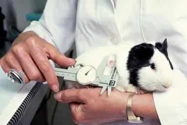 Keywords: Guinea pig tumor sizing.jpg An experimental guinea pig being held by a technician Only the technician's hands and the animal are visible The technician measures the size of a reaction of the animal due to a recent injection Topics/Categories Animals Type Color Photo Source National Cancer Institute Linda Bartlett Photographer 1961 1980 Reuse Restrictions None - This image is in the public domain and can be freely reused Please credit the source and/or author listed above Linda Bartlett Photographer PD-USGov-HHS-NIH Media from National Cancer Institute Visuals Online Images uploaded by Fæ Animal testing Human hands holding cavies Experimental guinea pigs |