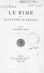 Keywords: Guittone - Rime, 1940 - 1851078 0001.jpg Book Guittone d'Arezzo Rime Laterza Bari ita it Le Rime / di Guittone d'Arezzo ; a cura di Francesco Egidi - Bari Laterza 1940 - 413 p ; 22 cm - Scrittori d'Italia ; 175 Frontespizio BEIC 1851078 Institution BEIC PD-old-100-1923 Poesia italiana - Sec 13 Literature of Italy |