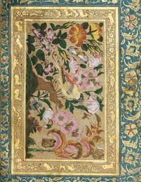| Keywords: Gul-o-Bulbul-17thC.jpg  en From the Manley album the recto gouache heightened with gold on paper a goldfinch seated on the branch of a rosebush with other brightly coloured plants and butterflies around it mounted on card with a border of birds and deer in gold outer blue margin with spiralling floral meander further information see source 2003-09-19 14 18 45 http //www christies com/lotFinder/lot_details aspx intObjectID 4160831 Possibly by Bahram Sofrakesh PD-old-100 Uploaded with UploadWizard Birds in Persian art Roses in applied arts Carduelis carduelis in art |