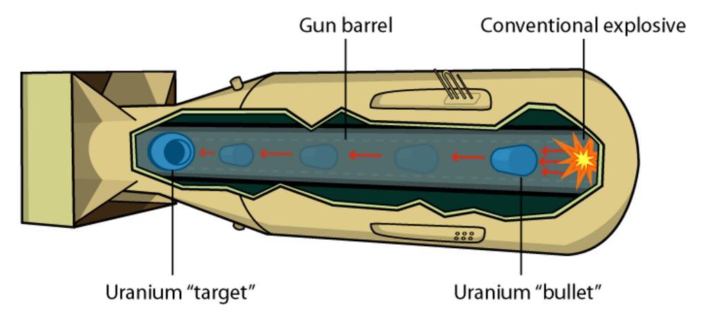 | Keywords: Gun-type Nuclear weapon.png Assessments 2 Gun-type w nuclear weapon w Little Boy created by User Fastfission in Adobe Illustrator This is not of course a technically accurate portrayal of the Little Boy weapon that was dropped on Hiroshima -- many aesthetic liberties have been taken for the purpose of explaining the gun-type concept for example as far as is known the bullet fired from the rear of the device to the target in the front of the device but if had been drawn that way you could not see the hole in the target into which the bullet would fit The purpose of this diagram is to explain the concept and still ground it in a real technological object; an attempt to have the benefits of abstraction without the detriment of forgetting that these are real objects -- User Fastfission Fastfission If you want to credit someone credit Wikimedia Commons Otherwise don't credit anyone that's fine by me --Fastfission 14 54 14 April 2008 UTC Cross sections of nuclear weapons Manhattan Project 2003 diagrams |