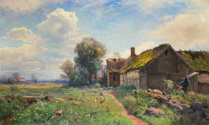 | Keywords: Gustaf Rydberg - Billingestugan.jpg  Billingestugan creator Gustaf Rydberg 1919 oil canvas cm 51 81 5 Enligt brev Denna tavla beställdes av mig på uppdrag av min fader hos kungl målaren Gustaf Rydberg hösten 1916 med följande ord; skulle farbror Rydberg vilja måla en tavla till pappa Han svarade; jag är så gammal nu så ser jag dåligt och målar långsamt Vad motiv skulle det vara Det får farbror själv bestämma blev mitt svar Jag hade då några år å rad träffat Gustaf Rydberg i Falsterbo och Skanör där han målade och bodde på Strandhotellet Ett helt år därefter eller hösten 1917 ringde så Gustaf Rydberg upp mig pr telefon och meddelade; Är det Seth Axelson Nu är tavlan färdig och du kan be din far komma upp och se på den Dagen därpå infunno vi oss i Rydbergs våning på Regementsgatan och min fader köpte tavlan Den fick dock ej genast medtagas enär den var osignerad och hämtades först några dagar senare Jag ärvde tavlan efter min faders död år 1926 Detta intygas på heder och samvete Ystad den 28 juli 1945 undertecknat Seth Axelson www uppsalaauktion se Public domain Other versions Gustaf Rydberg 1919 paintings PD-Art  |