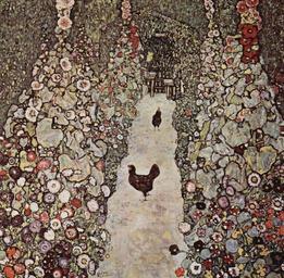 Keywords: Gustav Klimt 034.jpg Artwork title Jardí amb galls Garten mit Hühnern Garden with Roosters Jardín con gallos Jardin avec des coqs oil on canvas cm 110 110 object history provenanceEvent destroyed Vienna Yorck 1917 creator Gustav Klimt http //mail wikipedia org/pipermail/wikide-l/2005-April/012195 html Other versions Gardens in art chickens in art Paintings of flowers Klimt 1917 paintings Klimt 1910s paintings by Gustav Klimt 1917 Subjective Database of Paintings PD-old-70 PD-Art-YorckProject