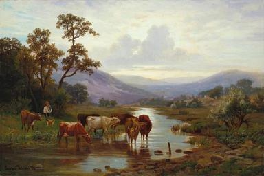 | Keywords: Gustav Richter - Harzlandschaft mit Kuhherde an der Tränke.jpg  oil canvas cm 58 86 accession number object history credit line exhibition history Gustav Richter 76 ~ lower left signature and date http //www arcadja com/auctions/en/private/richter_gustav/artworks/346920/0/ Lempertz Cologne 2009 03 21 lot 113 via ARCADJA auction results PD-old-auto-1923 1915 Images from Kunsthaus Lempertz Gustav Friedrich Wilhelm Richter Harz in art Landscape paintings of Germany 1870s landscape paintings Cattle in art |