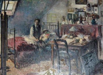 Keywords: Gustave Anthone.Interieur.JPG en Interior by Gustave Anthone 1897-1925 private collection Oil painting on canvas 100 x 110 cm Own photo by uploader - artwork by Gustave Anthone Georges Jansoone JoJan 2008-10-25 cc-by-3 0 PD-Art Gustave Anthone