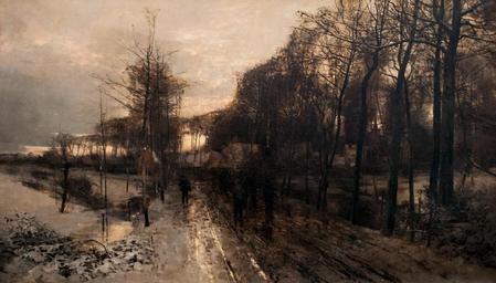 Keywords: Gustave De Duyts - Landscape in the Snow.jpg Artwork Gustave_den_Duyts Belgian painter Ghent 1850 - Brussel 1897 1889 Oil on canvas Institution Museum voor Schone Kunsten Gent object history Aangekocht op de Salon van Gent 1889 credit line accession number 1889-D own photo by Szilas in the Museum voor Schone Kunsten Gent PD-old-100 Belgian paintings in the Museum of Fine Arts Ghent Paintings of country roads in winter |