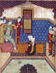 Keywords: Güyük interrogeant Djamâl al-Dîn Mahmûd Hudjandî.jpeg Güyük interrogates Jamâl al-Dîn Mahmûd Hudjandî Tarikh-i Jahangushay-i Juvaini Güyük interrogeant Jamâl al-Dîn Mahmûd Hudjandî Târîh-i djahângushâ'î Djuvaynî Гуюк доп ашивает Джемал ад-Дина ахмуда Ходженди «Та их-и-джехангуша» Джувейни Bibliothèque nationale de France Département des Manuscrits Division orientale http //mandragore bnf fr/jsp/rechercheExperte jsp Supplément persan 206 fol 136 fr Abdullâh Sultân atelier Shîrâz асте ская Абдулла Султана Ши аз 1438 PD-old-100 Güyük Tarikh-i Jahangushay Bibliothèque nationale Supplément persan 206 |